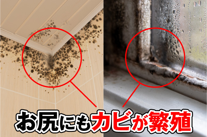 お尻にもカビが繁殖し、とても不潔な状態になっているんです。
